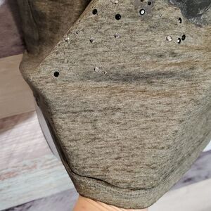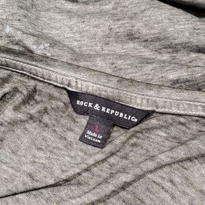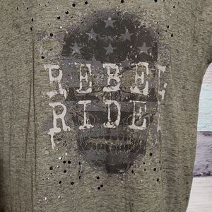 Rock Republic Olive Gray Buronout Rebel Rider Skull Studded Tee Shirt Sz L 923