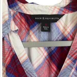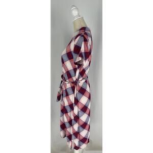 Rock & Republic Plaid T Shirt Midi Dress Womens Small Red Blue Short Sleeve