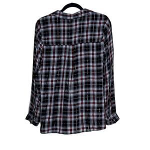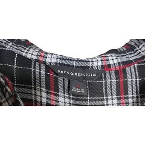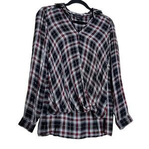 Rock Republic Plaid Shirt, Hi Lo Faux Wrap Top, Black Red Silver, Grunge, Y2k