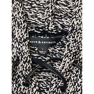 Rock & Republic Pull Over Hoodie cable knit sweater Small Black Gray