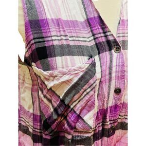 Rock & Republic Purple Checkered Split Back Sleeveless Button Front 100% Rayon B