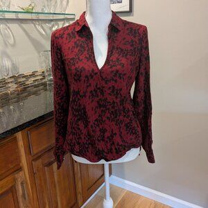 Rock & Republic Red Black Print Blouse | M | Faux Wrap Hi-Lo Long Sleeve Top