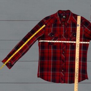 Rock & Republic Red Plaid Button-Down Shirt | Size Large | Stretch