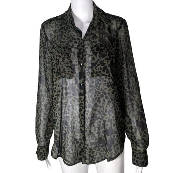 Rock & Republic Shirt Womens Small Camo Animal Print Cheetah Sheer Long Sleeve