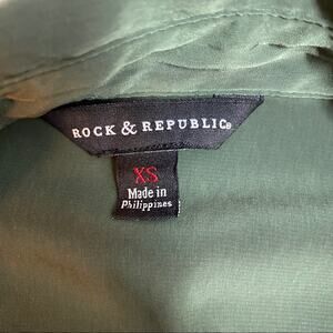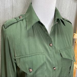 Rock & Republic Silky Army Green Button Up Blouse Size XS