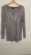 Rock & Republic Silver Metallic Long Sleeve V Neck Top Semi Sheer Size Large