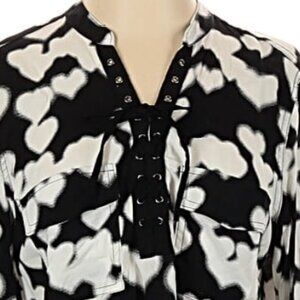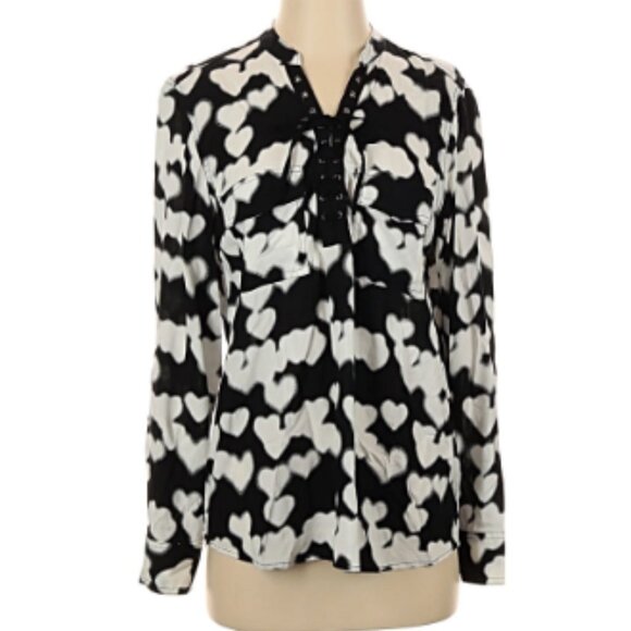 Rock & Republic Size M Long sleeve blouse Black & White Hearts