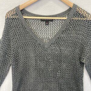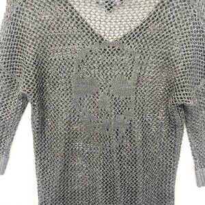 Rock & Republic Skull Open Knit Pullover Sweater Womens Medium Gray Punk Goth