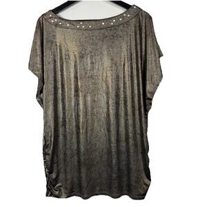 Rock & Republic Top Bronze Shimmer Textured Studded Metallic Mixed Metal Holiday