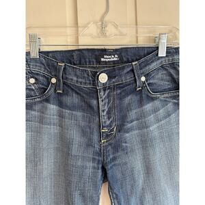 Women’s Rock Republic Roth style wide leg jeans. Jeans have orange logo on back pockets, size 30, 31” inseam. Some fray on bottom cuffs and very small fray hole on inside seam..see last pics.