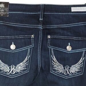 Rock & Republic Womens Denim Stretch Capris Rhinestone Wings Pocket Plus 20W NWT