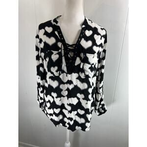 Rock & Republic Womens Long Sleeves Corset Tie Front Casual Shirt In Black and White. Size Small. In excellent barely worn condition.