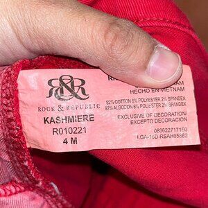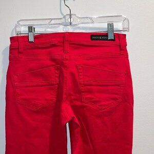 Rock & Republic Womens Red Skinny Jeans With Zipper Pockets Size 4