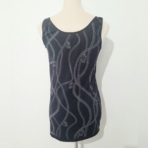Rock & Republic Women's XL Tank Top Black Skull Chain Print Stretch Nylon Blend