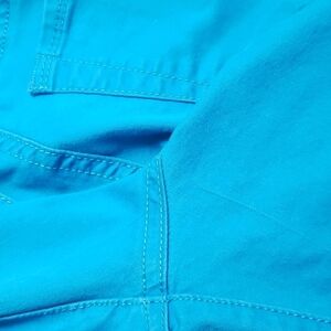 Electric blue 9" front rise 14" back rise 5-1/2" ankle 32" waist 27-1/2" inseam