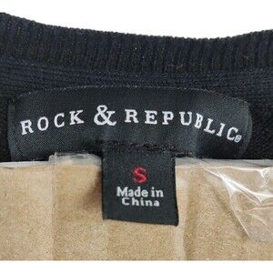 The Rock & Republic pullover sweater is a stylish and comfortable addition to any woman's wardrobe. Made from 100% cotton with a tight-knit fabric, this gray sweater features a classic V-neck and long sleeves with raglan sleeves for added style. Machine washable for easy care, it offers a regular fit and is available in size Small. Perfect for everyday wear or to dress up an outfit, this pullover sweater from a reputable brand like Rock & Republic is a versatile piece that can be worn for years to come.