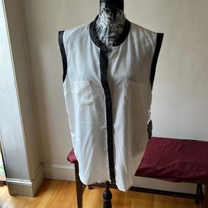 Rock & Republic size 12 sleeveless white button down w/faux leather trim