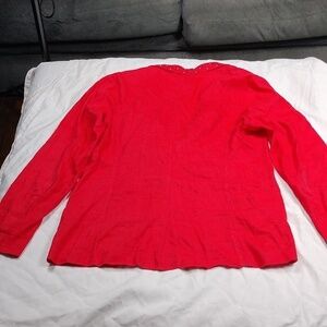 Rock & Republic studded women's blazer size 12. There is a tiny spot on the left side shoulder on the back. It is a deep orangish red
