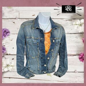 Rock & RepublicโRUNAWAY Denim Jean Jacket, Women's XS, Studded, Distressed EUC