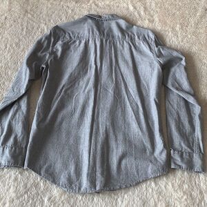 Rock & Republic gray button down shirt with a zipper on the front chest.