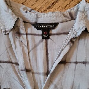 Rock & Republic size XS button down shirt blouse. Top is shorter in the front and longer in back beautiful design only worn once, can fit anyone size small to XS