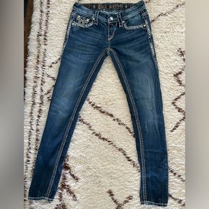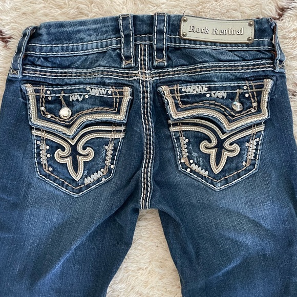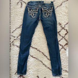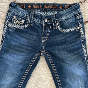 These are Kal skinny fit Rock Revival Jeans from Buckle. Fits true to size, some stretch but not a ton.