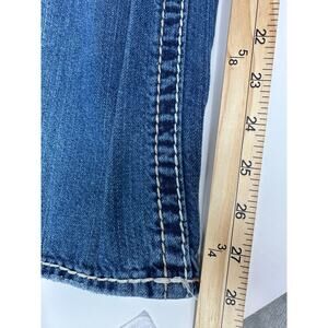 Rock Revival “Amy” Capri jeans in size 25. Mid-rise fit with a 28-inch inseam, perfect for wearing as full length or rolled for a cropped look. Made from a soft, stretchy cotton blend for comfort and shape retention. Features subtle distressed details, clean cuffs, and signature Rock Revival embroidered back pockets. Classic five-pocket styling, zip fly with button closure. Great casual style for spring, summer, or fall.