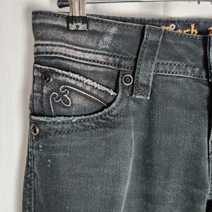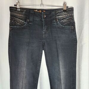 Stylish and versatile black jeans with rhinestone Studded accents. Button Fly closure, 6 pockets, in excellent pre-owed condition.