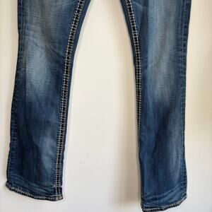 Rock Revival Anja Boot Embroidered Jeans 28 Low Rise Thick Stitch Y2K 2000s
