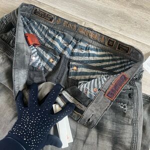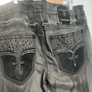 Rock Revival Armory Biker Faded Gray Distressed Embellished Jeans