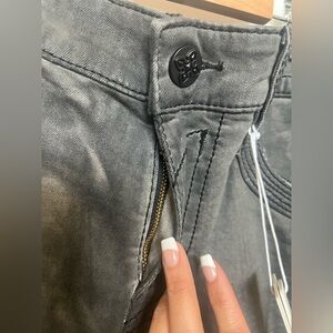 Rock Revival Armory Biker Faded Gray Distressed Embellished Jeans
