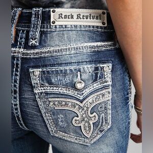 Sequins and rhinestones on embroidered faux flap back pockets
