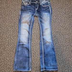 Rock Revival Betty Boot Distressed Jeans Size 27 Rhinestone Pocket Bling