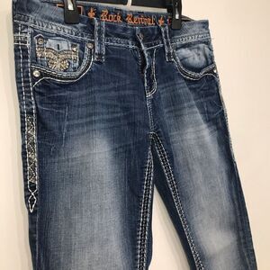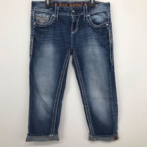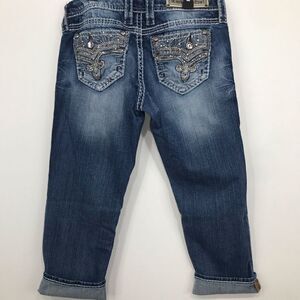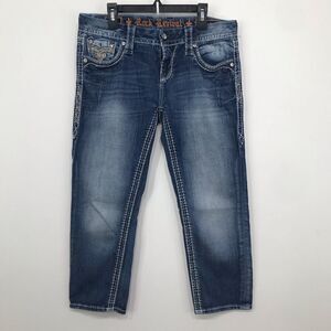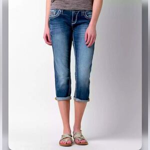 Rock Revival Betty Easy Crop Embroidered Gem Embellished Denim Capri Jeans