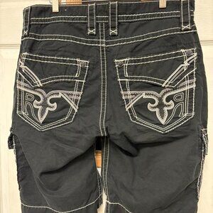 Rock Revival Black Slim Cargo Shorts Men’s black white stitching