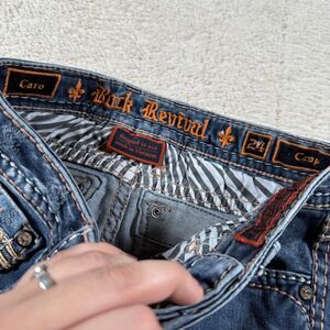 Rock Revival Caro Cropped Straight Skinny Women’s Jeans in gently used condition. Size women’s 24. Waist 26”, rise 7”, inseam 23”, leg opening 4 3/4”. 🤠 2000s Rodeo Cowgirl / Bootcut Bling Jeans / Country Concert Fit