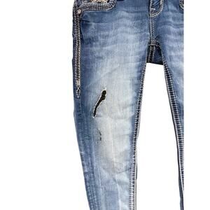 Rock Revival Celinda Ankle Skinny Jeans Thick Stitch Bling Womens Size 25