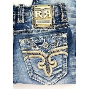 Rock Revival Chavo Bootcut Stretch Jeans Mens 29x31 Embroidered Leather Inserts