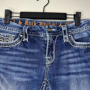 Rock Revival Clover Capri Jeans Size 28 Distressed Jewels