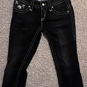 Size 26 boot cut Rock Revival jeans. Hardly warn. Extremely dark wash / black with silver accents and stitching. Non distressed