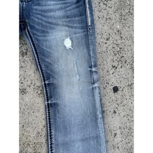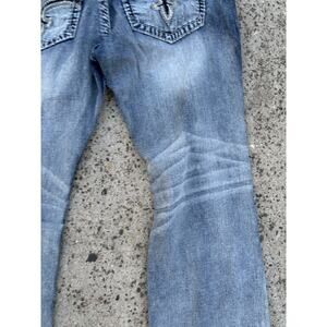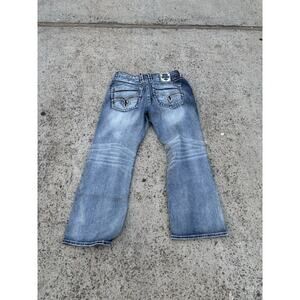Distinctive straight cut. Faded blue wash. Iconic pocket embroidery.