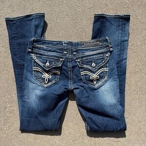 Rock Revival Elaina Boot Cut Bling Embroidered Flap Pocket Jeans Size 28x34