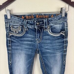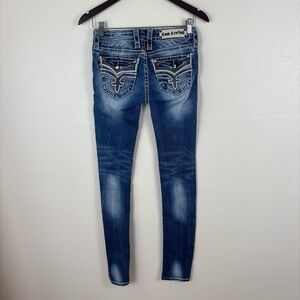 Rock Revival Ena Skinny Jeans Dark Wash Blue Women's Size 25 Rhinestones