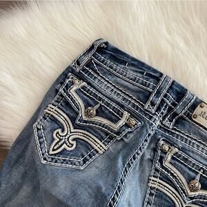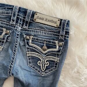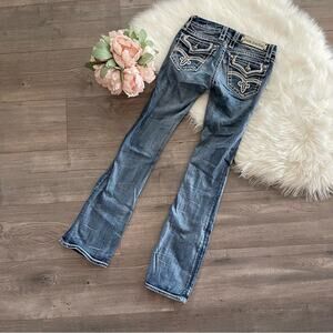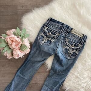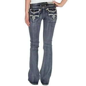 Rock Revival Essie Bootcut Light Blue Wash White Design Jeans 25