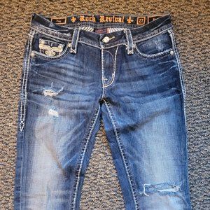 Rock Revival Fay Easy Boot Distressed Jeans Size 27 Rhinestone Pocket Bling