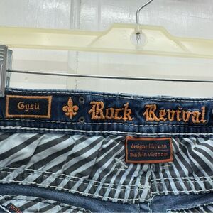 Rock Revival Gysu thick stitch easy boot cut denim jeans women's 28 inseam of 31.5 jewels gems rhinestones embroidery