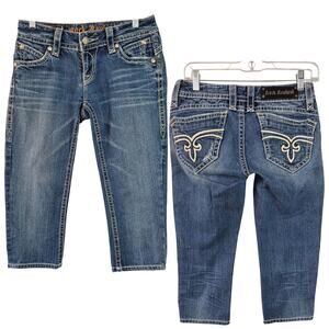 Rock Revival Heavy Stich Embroidered Pocketss Amy Boot Blue Jeans Crop Capri 27