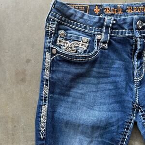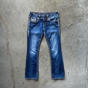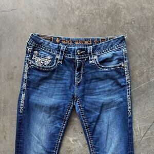Rock Revival Janelle Bootcut Jeans Women's 28 Dark Low Rise Embroidered Denim