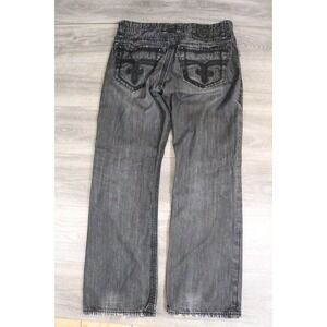 Rock Revival Jason Bootcut Distressed Black Denim Jeans Mens Size 38x33