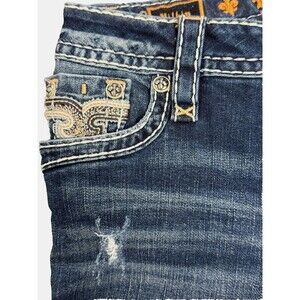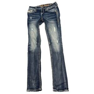 Rock Revival Jeans 25 Distressed Rip Y2K Crystal Flap Pocket Straight Streetwear